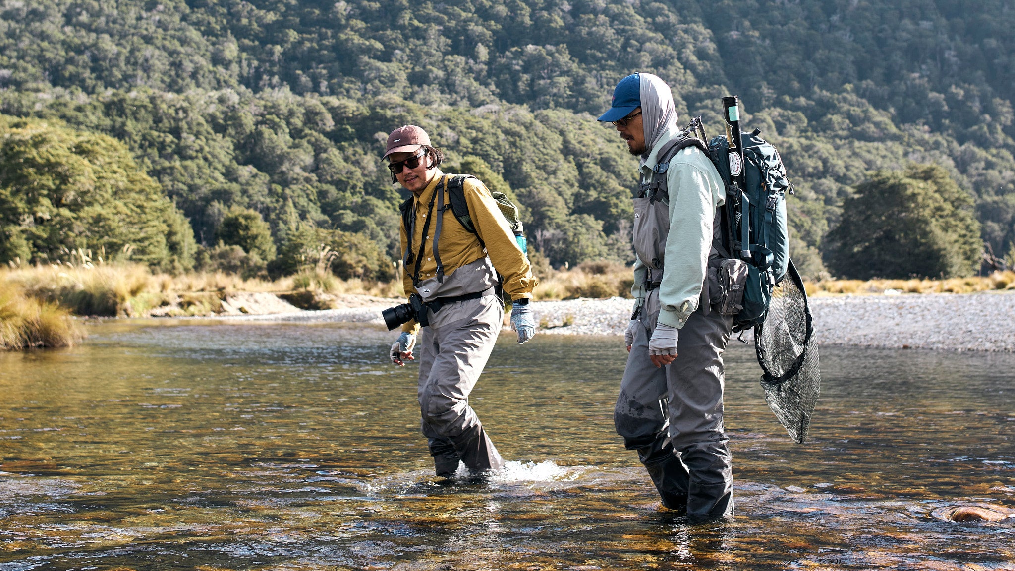 金属パーツは一切使用せず、錆びない仕様に。ソルトウォーターでの釣りにも安心して着用いただけます。